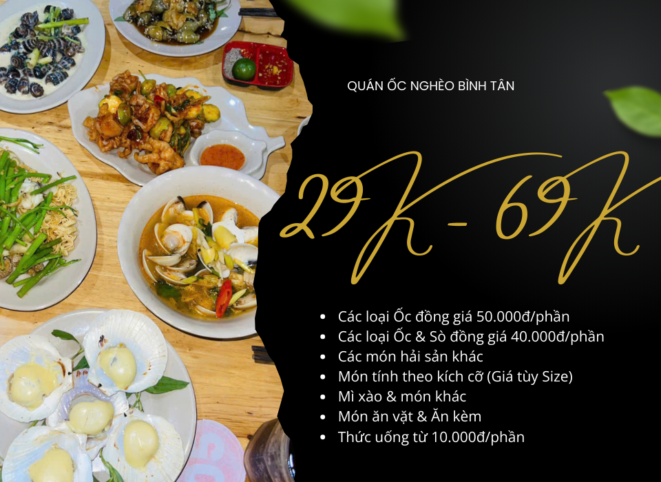 Bạn đang tìm một địa điểm “tới bến” cùng hội bạn thân hay bữa tối ấm cúng cùng gia đình? Đừng bỏ qua Ốc Nghèo – nơi hội tụ của những món hải sản tươi rói, chế biến đậm đà mà giá lại cực kỳ “hạt dẻ”!